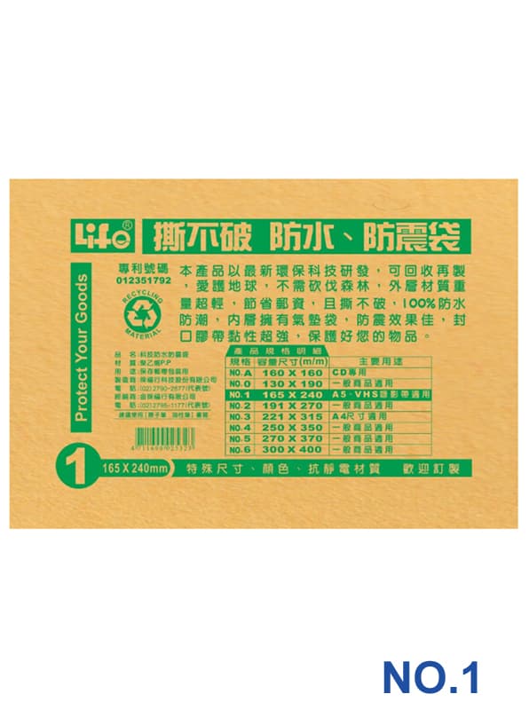 撕不破 防水 防震袋_NO.1 | 165*240mm | A5、VHS錄影帶適用 |