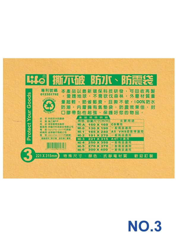 撕不破 防水 防震袋_NO.3 | 221*315mm | A4尺寸適用 |